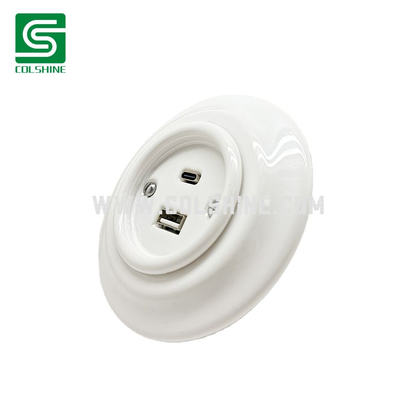 The Retro Porcelain USB Outlet Socket combines classic European porcelain elegance with modern USB fast-charging technology. Designed for flush mounting, it fits neatly into walls, offering a clean, timeless appearance that perfectly matches vintage interiors, cafés, hotels, and designer homes.